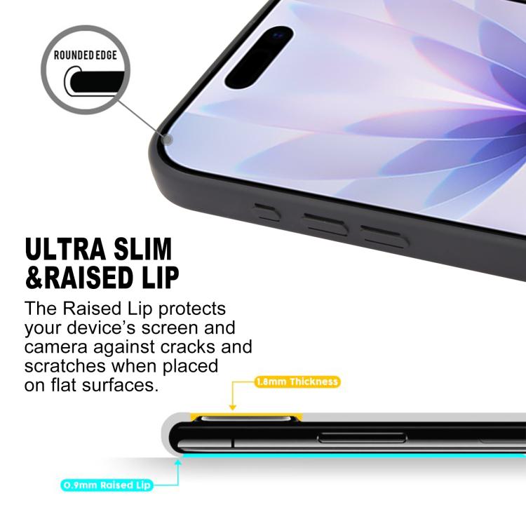 3. Protección de pantalla y cámara: El borde elevado alrededor de la pantalla y la lente de la cámara protege contra arañazos.