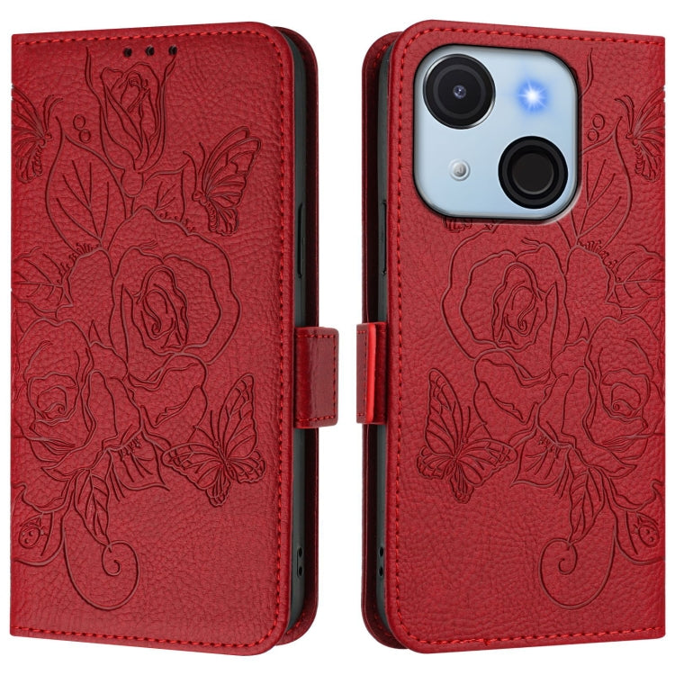 Funda de Cuero Antirrobo RFID con Relieve para Teléfono Itel A50C (Rojo)