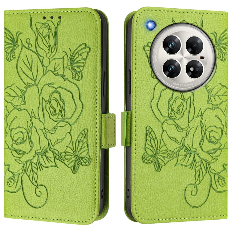 Funda de Cuero Antirrobo RFID con Relieve Rosa para Infinix Zero 40 5G/4G (Verde)