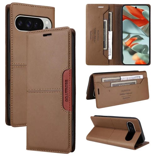 Funda de Cuero Antirrobo RFID Gqutrobe G01 para Google Pixel 9 Pro XL (Marrón)