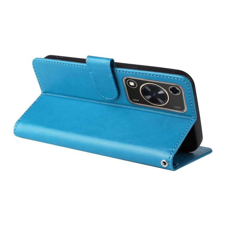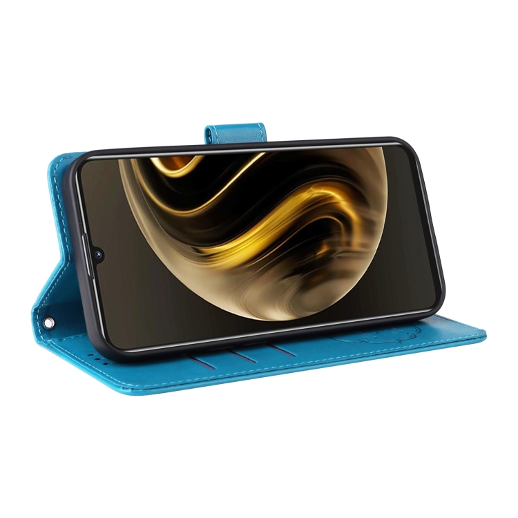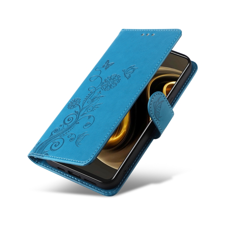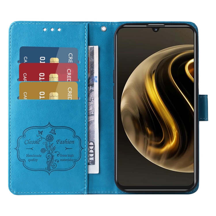 Funda de Cuero con 70 Flores de Mariposa en Relieve para Huawei Nova Y72 4G/Enjoy (Azul)