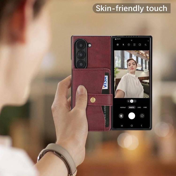 Funda de cuero con anillo MagSafe para Samsung Galaxy Z Fold6 (rojo)
