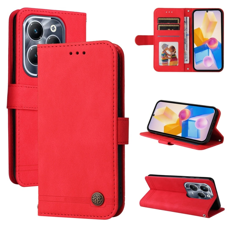 Funda de Cuero para Infinix Hot 40 y Hot 40 Pro con Botones de Metal y Diseño Árbol de la Vida (Rojo)