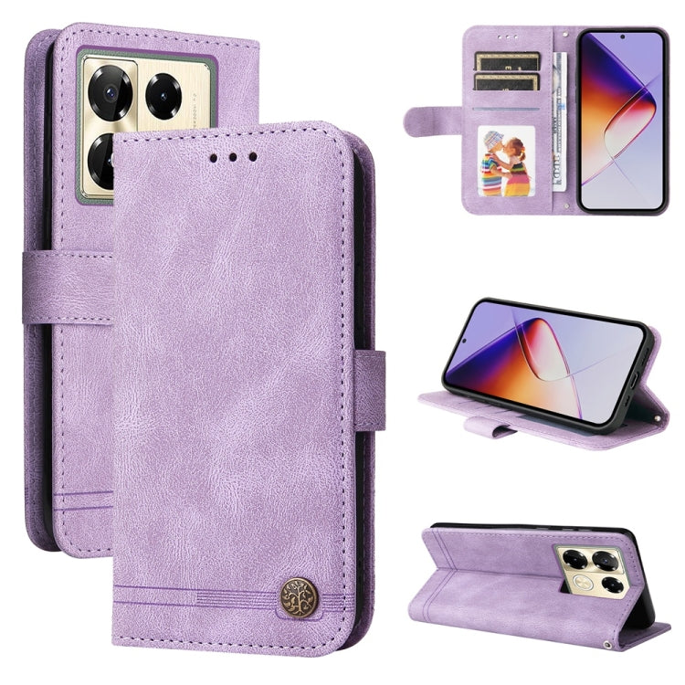 Funda de Cuero con Botones de Metal y Árbol de la Vida para Infinix Note 40 Pro 4G/5G/Pro+ (Morado)