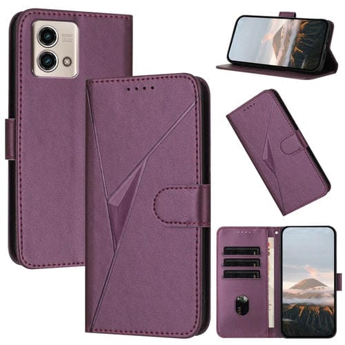 Funda de Cuero con Cierre de Hebilla y Diseño Triangular para Motorola Moto G Stylus 2023 (Morado Oscuro)