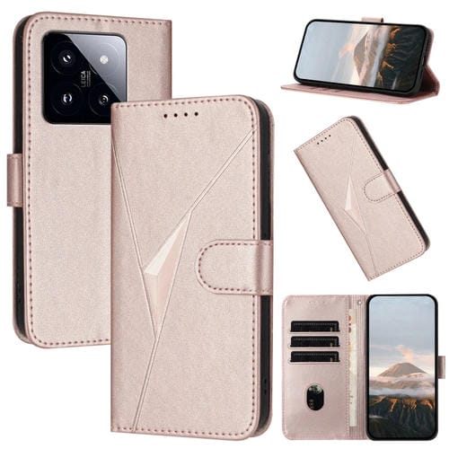 Funda De Cuero Con Hebilla Triangular Para Xiaomi 14 Pro (Oro Rosa)