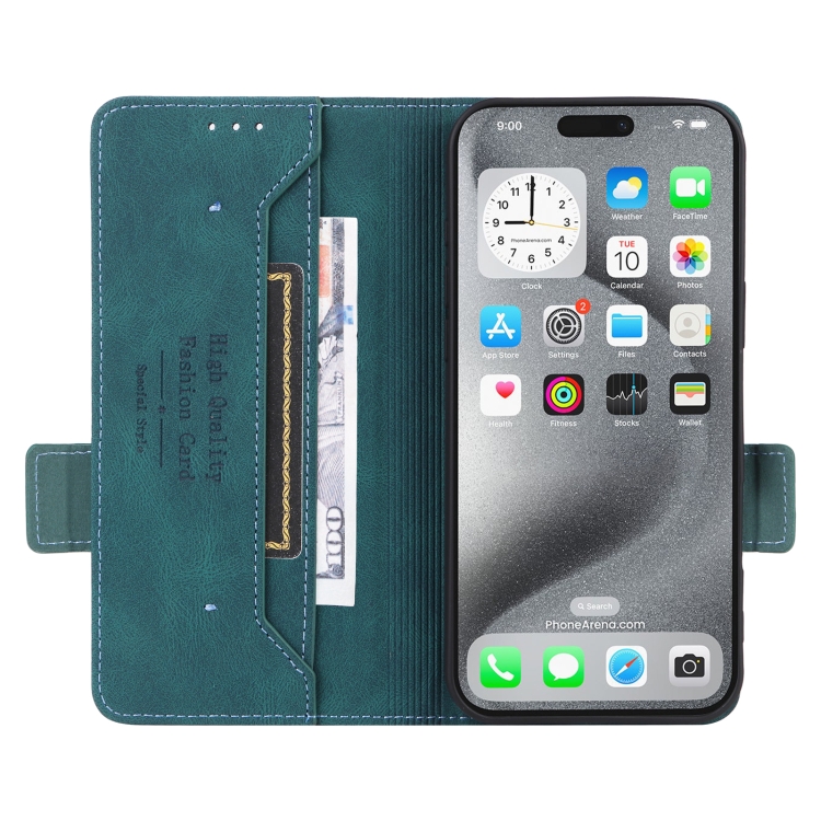 Funda de Cuero para iPhone 16 Pro Max con Cierre Magnético (Verde)