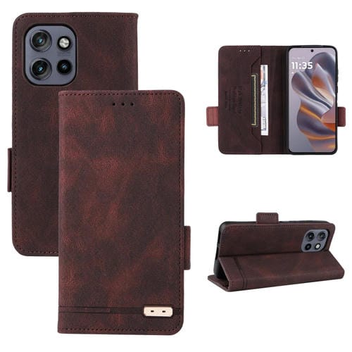 Funda de Cuero con Cierre Magnético para Motorola Edge 50 Neo 5G (Marrón)