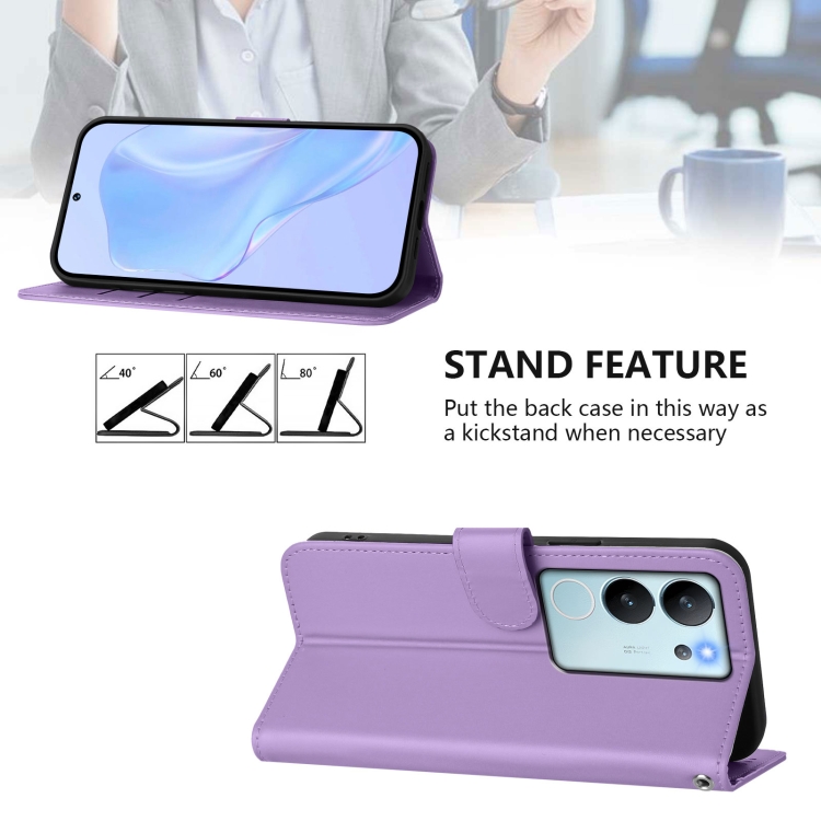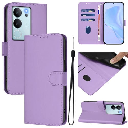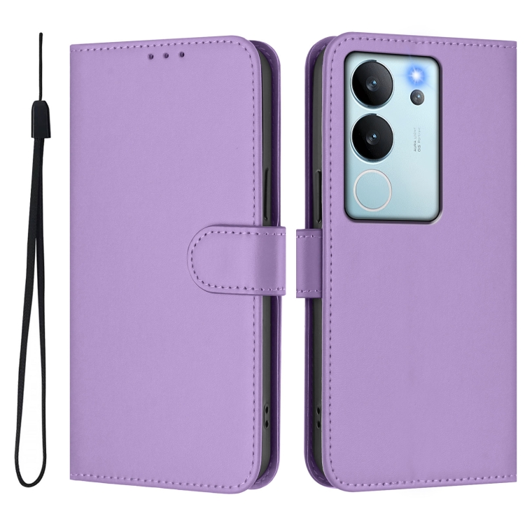 Funda de Cuero con Cordón para Teléfono con Sensación de Piel Global para Vivo V30 Lite 5G (Morado Lavanda)