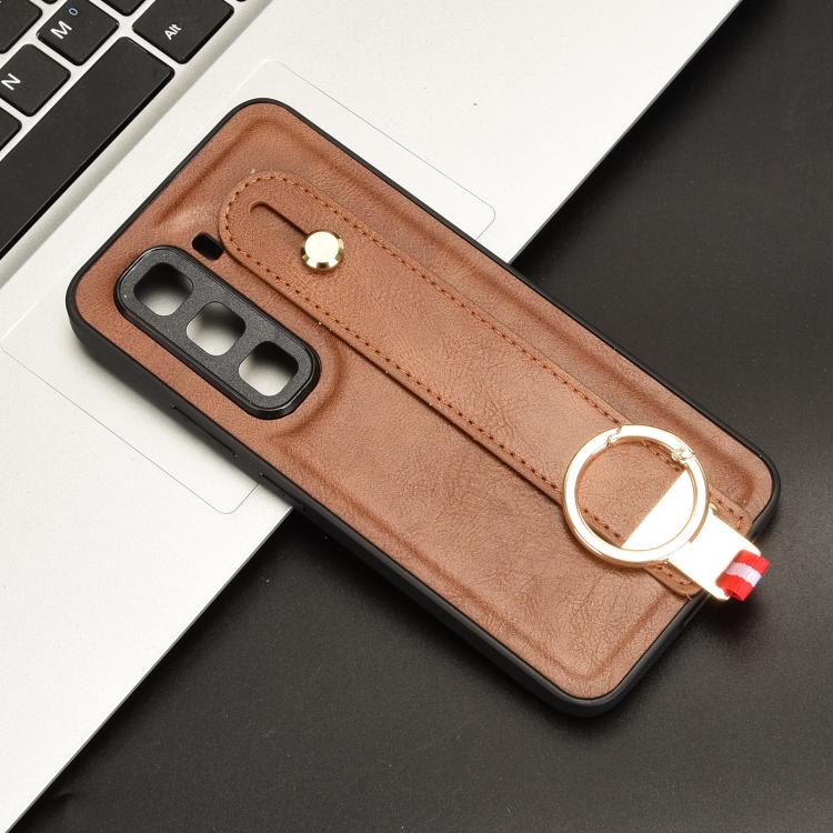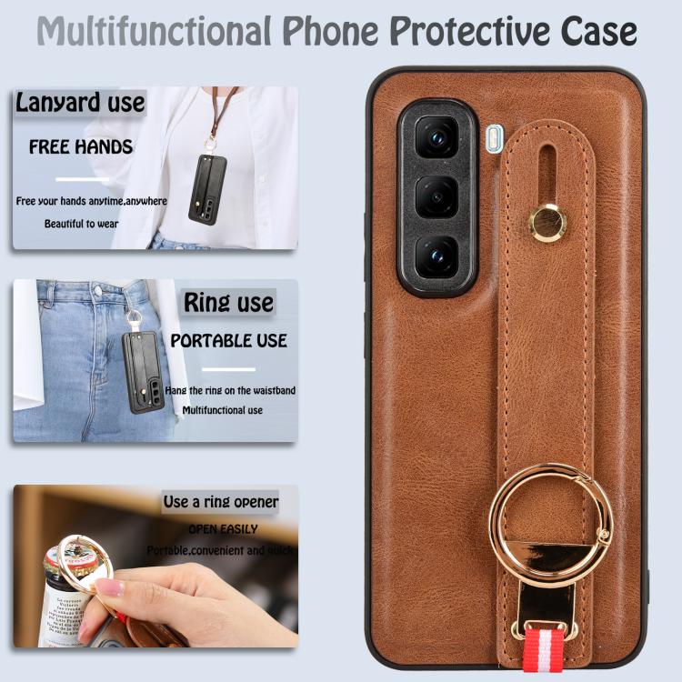 Funda de Cuero con Correa para El Brazo para Infinix Hot 50 Pro+ 4G X6880 (Marrón)