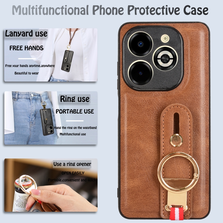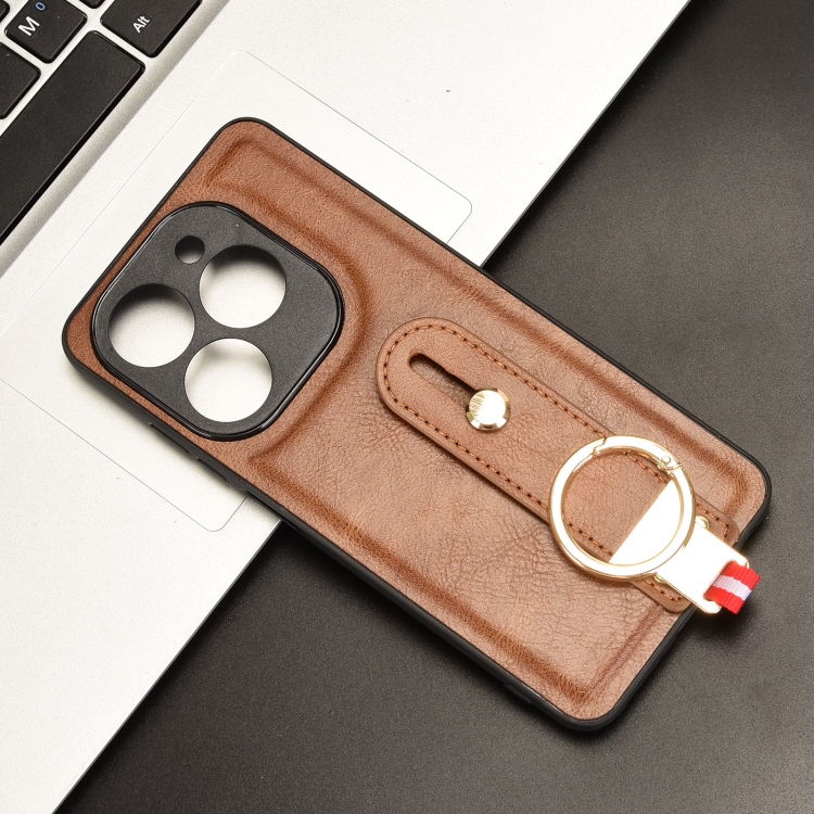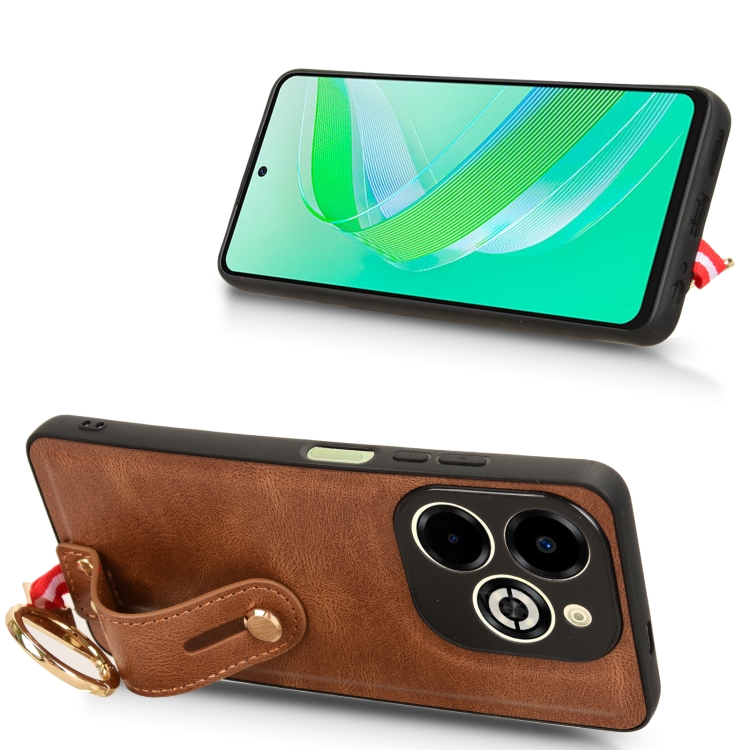 Funda de Cuero con Correa para el Cuello para Infinix Smart 8 Plus y Smart 8 Pro (Marrón)