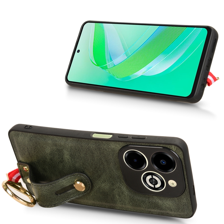 Funda de Cuero con Correa para el Cuello para Infinix Smart 8 Plus/Smart 8 Pro (Verde)