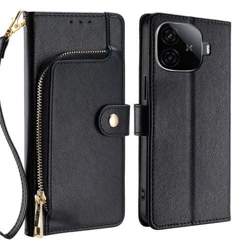 Funda de Cuero con Cremallera para Teléfono Vivo Iqoo Z9 Turbo (Negra)
