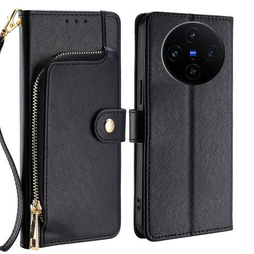 Funda de Cuero con Cremallera para Teléfono Vivo X100S (Negra)