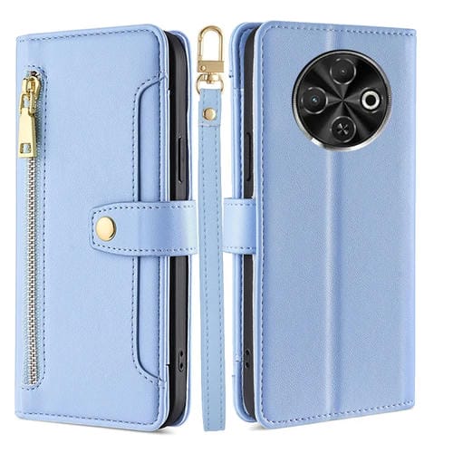Funda de Cuero con Cremallera y Diseño de Oveja para Tecno Spark 30C 4G (Azul)