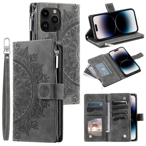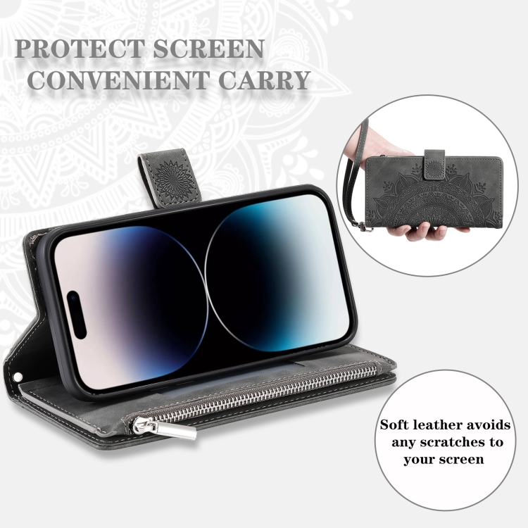 Funda de Cuero con Cremallera y Múltiples Tarjetas para Xiaomi Redmi 13 4G (Gris)