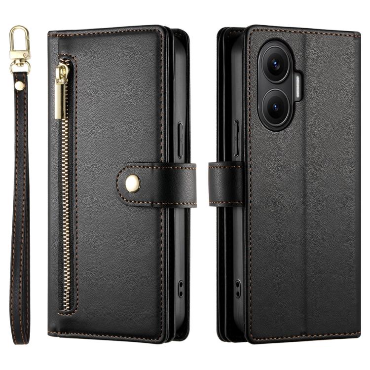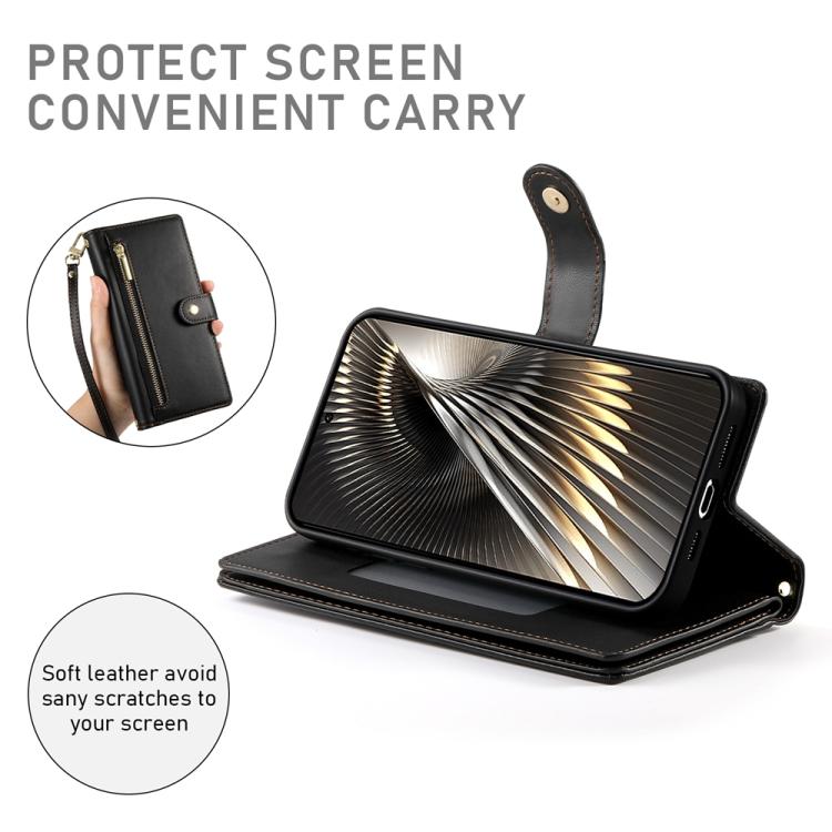 Funda de cuero con cremallera y ranura para tarjetas para Redmi Turbo 4 Pro y Xiaomi Poco F7 (negra)