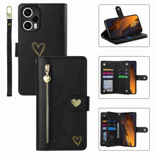Funda de Cuero con Cremallera y Ranuras para Múltiples Tarjetas para Xiaomi Poco F5 Pola Love (Negro)