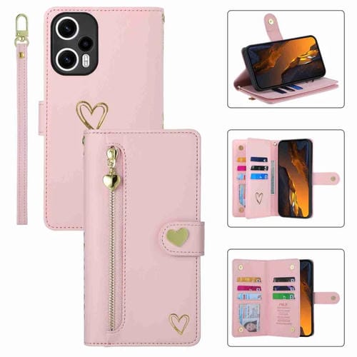 Funda de Cuero con Cremallera y Ranuras para Varias Tarjetas para Xiaomi Poco F5 Pola Love (Rosa)