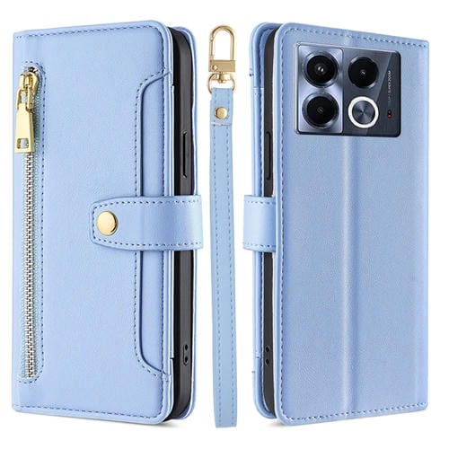 Funda de Cuero con Cremallera Textura de Oveja para Infinix Note 40 5G (Azul)