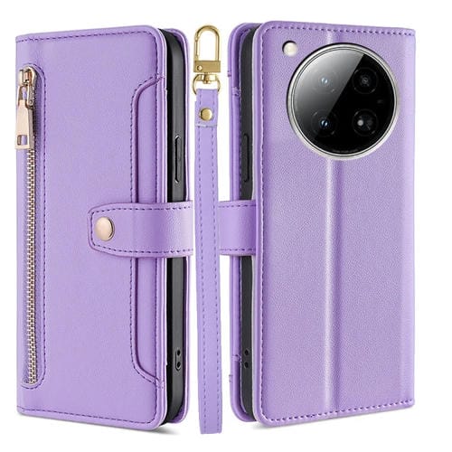 Funda de Cuero con Cremallera y Textura de Oveja para Infinix Zero 40 4G (Morado)