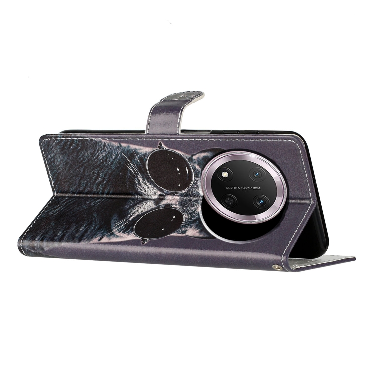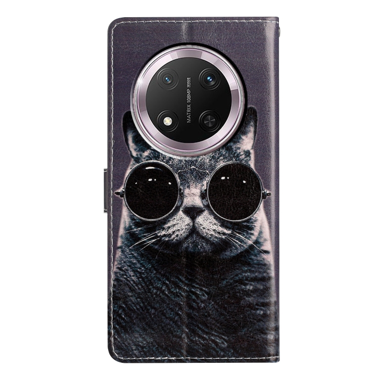 Funda de Cuero para Honor X9C 5G con Dibujo a Color Gafas de Sol y Gato