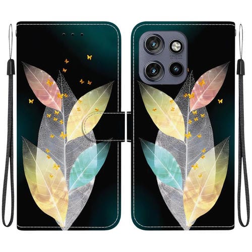 Funda de Cuero Motorola Edge 50 Neo 5G con Dibujo y Textura de Cristal (Hojas de Colores)
