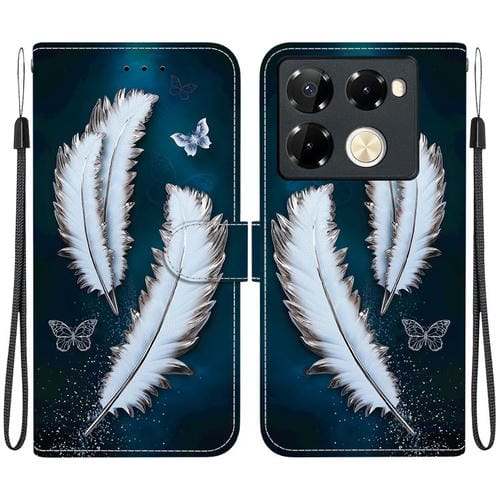 Funda de Cuero para Infinix Note 40 Pro 4G/5G/Pro+ con Dibujo y Textura de Cristal (Plumas de Mariposas Blancas)