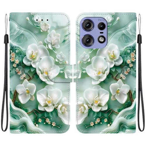 Funda de Cuero para Motorola Edge 50 Pro con Dibujo de Colores y Textura de Cristal (Flores de Jade)