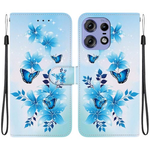 Funda de Cuero para Motorola Edge 50 Pro con Dibujo de Colores y Textura de Cristal (Mariposas Azules)