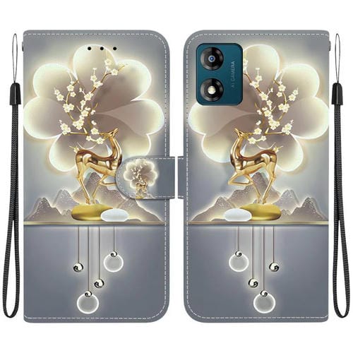 Funda de Cuero Motorola Moto E13 con Dibujo de Colores y Textura de Cristal (Ciervo Sika)