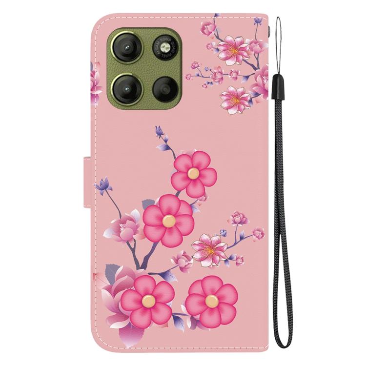 Funda de Cuero Motorola Moto G15 con Dibujo de Colores y Textura de Cristal (Flores de Cerezo)