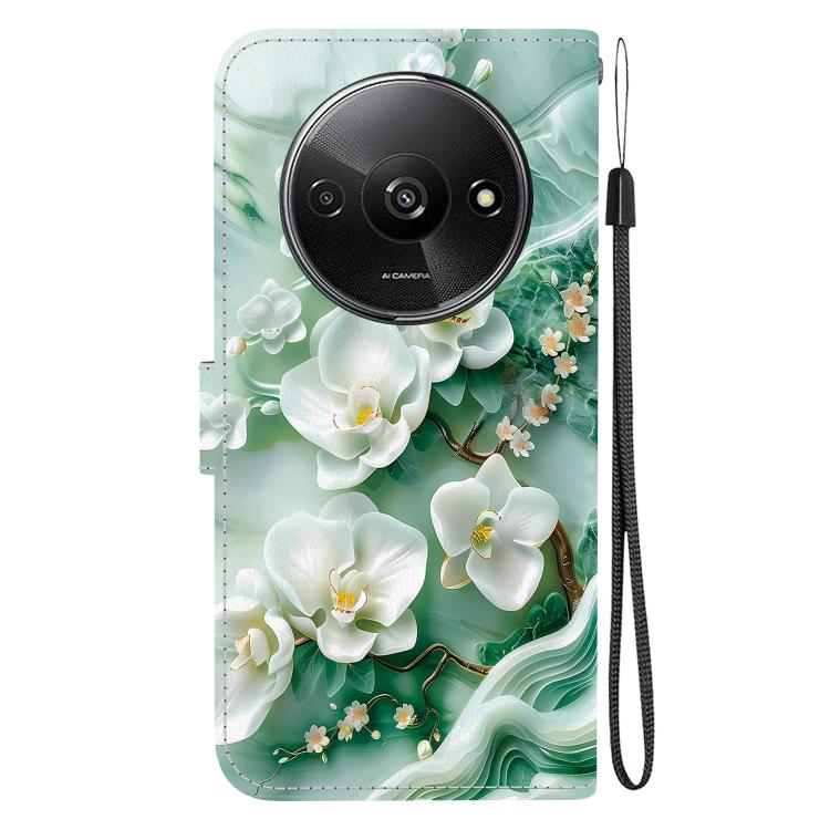 Funda de Cuero con Dibujo de Colores y Textura de Cristal para Redmi A3 (Flores de Jade)