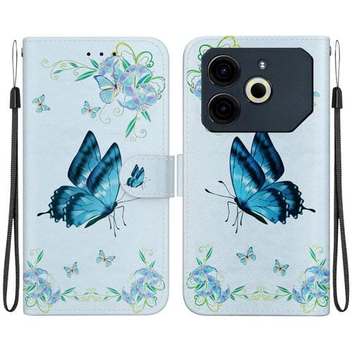 Funda de Cuero para Tecno Pova 6 Neo con Dibujo de Colores y Textura de Cristal (Pensamientos Azules)