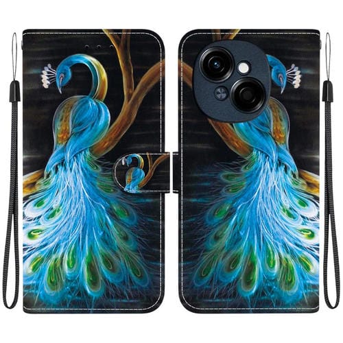 Funda de Cuero para Tecno Spark Go 1 y Pop 9 Pro con Dibujo de Colores y Textura Cristal (Pavo Real)