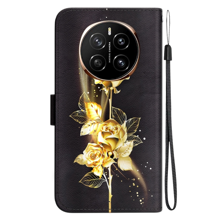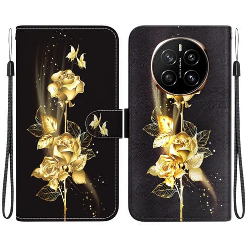 Funda de Cuero para Honor Magic7 con Dibujo de Colores y Textura de Cristal (Mariposa Dorada y Rosa)