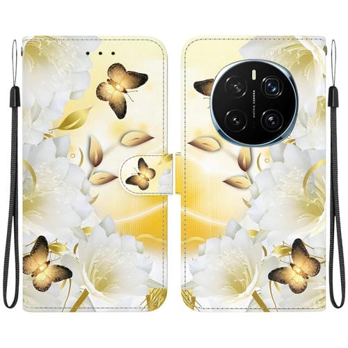 Funda de Cuero Honor Magic7 Pro con Dibujo de Colores y Textura de Cristal (Mariposa Dorada Epiphyllum)