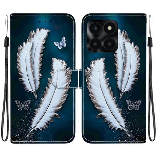 Funda de Cuero Honor X6A con Dibujo y Textura de Cristal (Plumas de Mariposa Blancas)