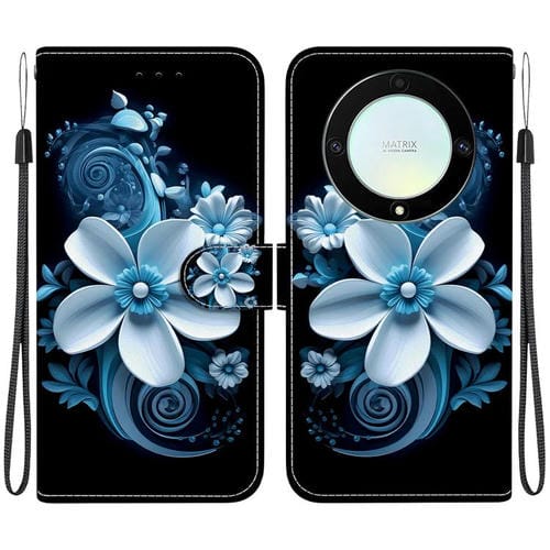 Funda de Cuero con Dibujo y Textura de Cristal para Honor X9A (Orquídea Negra)