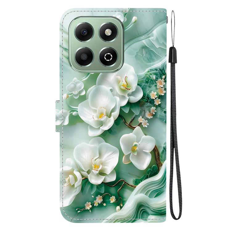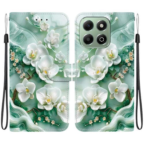 Funda de Cuero para Honor X6B con Dibujo Flores de Jade y Textura de Cristal