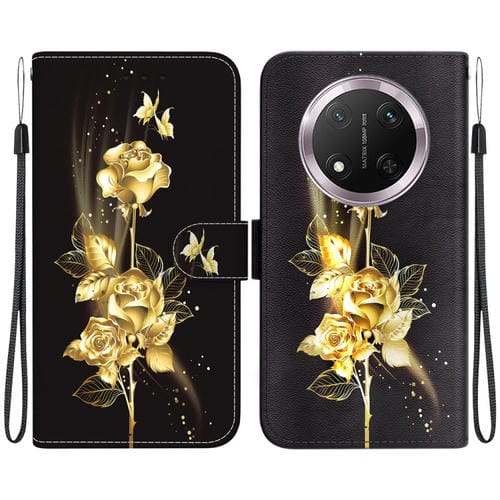 Funda de Cuero con Dibujo y Textura de Cristal para Honor X9C (Mariposa Dorada y Rosa)