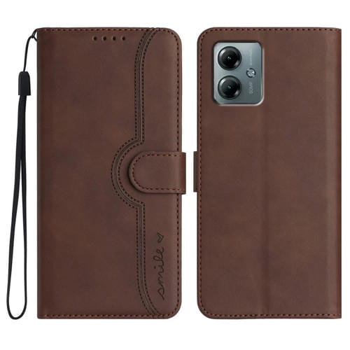 Funda de Cuero para Motorola Moto G Play 2025 y G Power 2025 con Diseño de Corazón (Marrón)