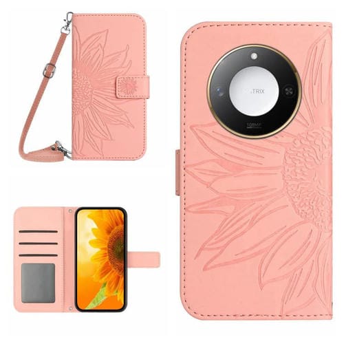 Funda de Cuero Honor X9C Smart Skin Feel con Diseño de Flores y Sol y Cordón (Rosa)