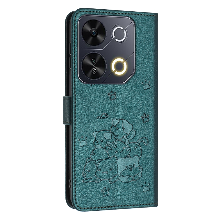 Funda de Cuero Itel P65 4G/P671L con Diseño de Gatito en Relieve y Cordón (Verde Oscuro)