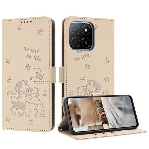 Funda de Piel Honor X5B X5B Plus con Diseño de Gatito en Relieve y Cordón (Beige)