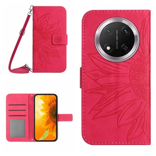 Funda de Cuero con Diseño de Girasol y Cordón para Honor X9C (Rosa y Rojo)
