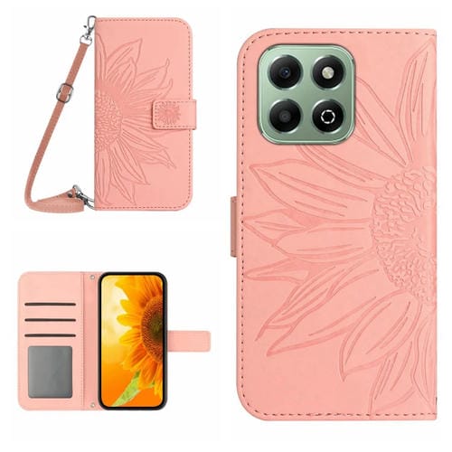 Funda de Cuero para Honor 200 con Diseño de Girasoles y Cordón (Rosa)