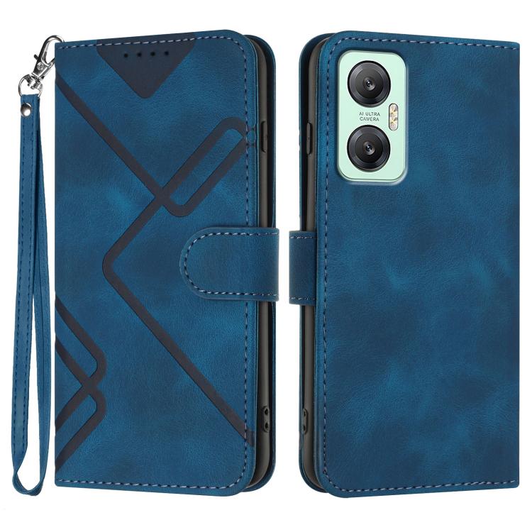 Funda de Cuero para Infinix Hot 20 5G con Diseño de Líneas y Tacto Suave (Azul)