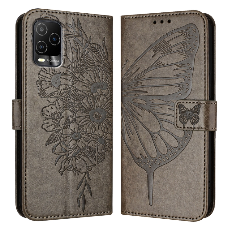 Funda de Cuero Blu View 5 Pro Diseño Mariposa Relieve (Gris)