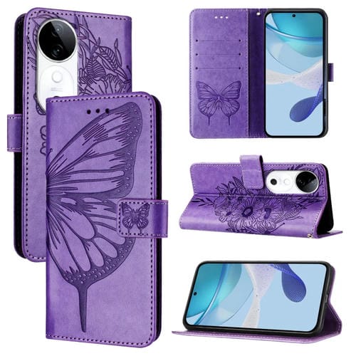 Funda de Cuero con Diseño de Mariposa En Relieve para El Teléfono Vivo S19 (Morado Claro)